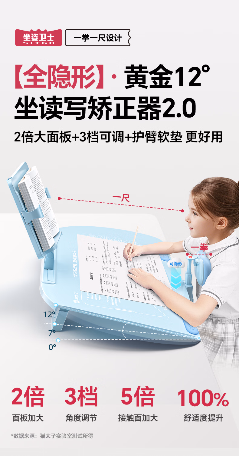 猫太子黄金12°坐姿矫正器儿童矫正神器写字姿势纠正器
